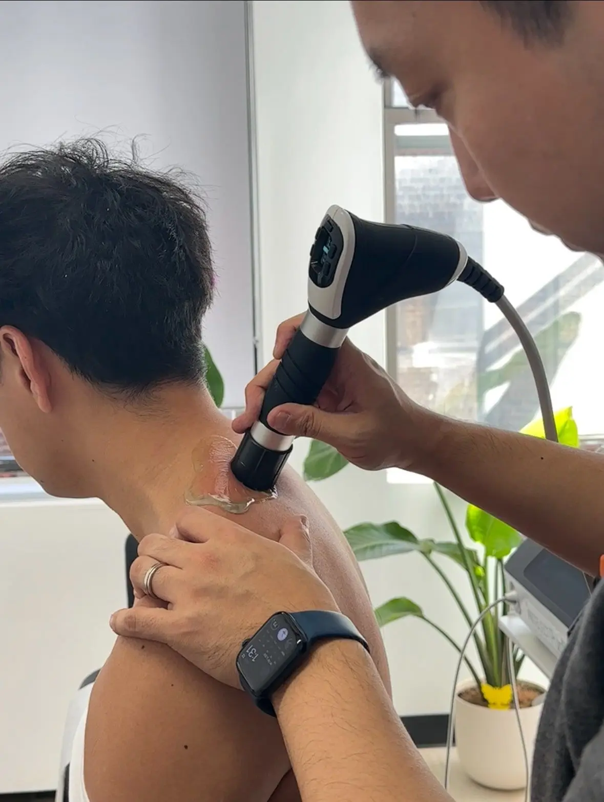 At our clinic, we use shockwave therapy for plantar fasciitis, tendonitis, shoulder pain, tennis elbow, knee pain, and chronic back pain to help patients recover faster without injections or surgery.